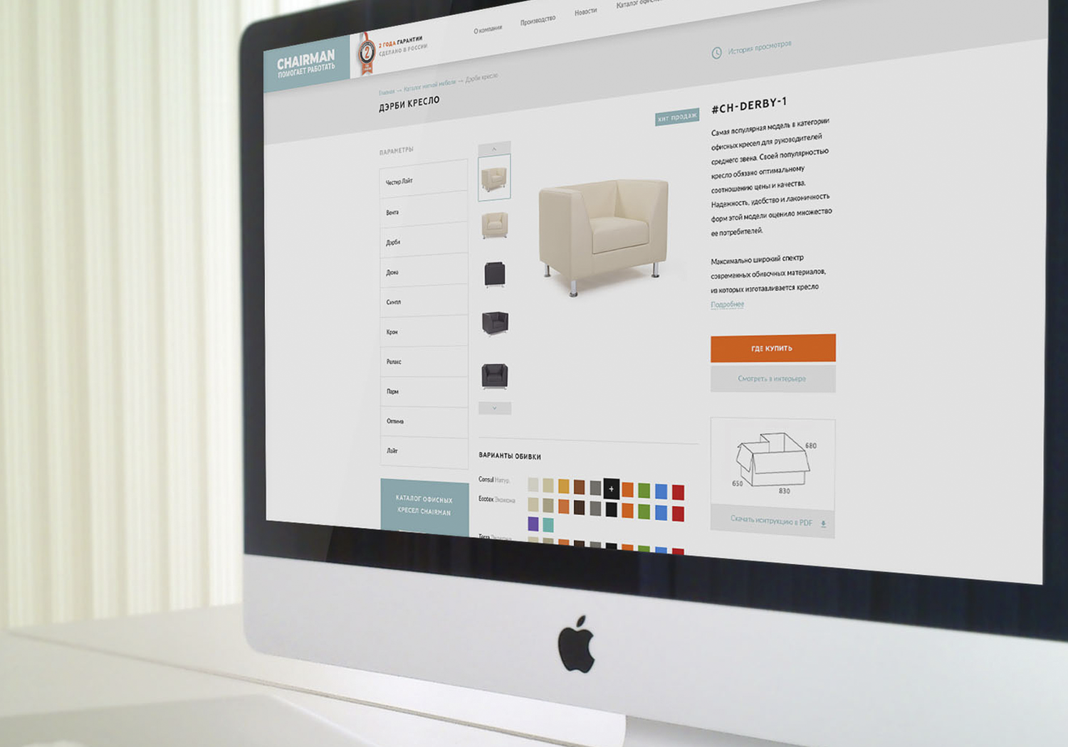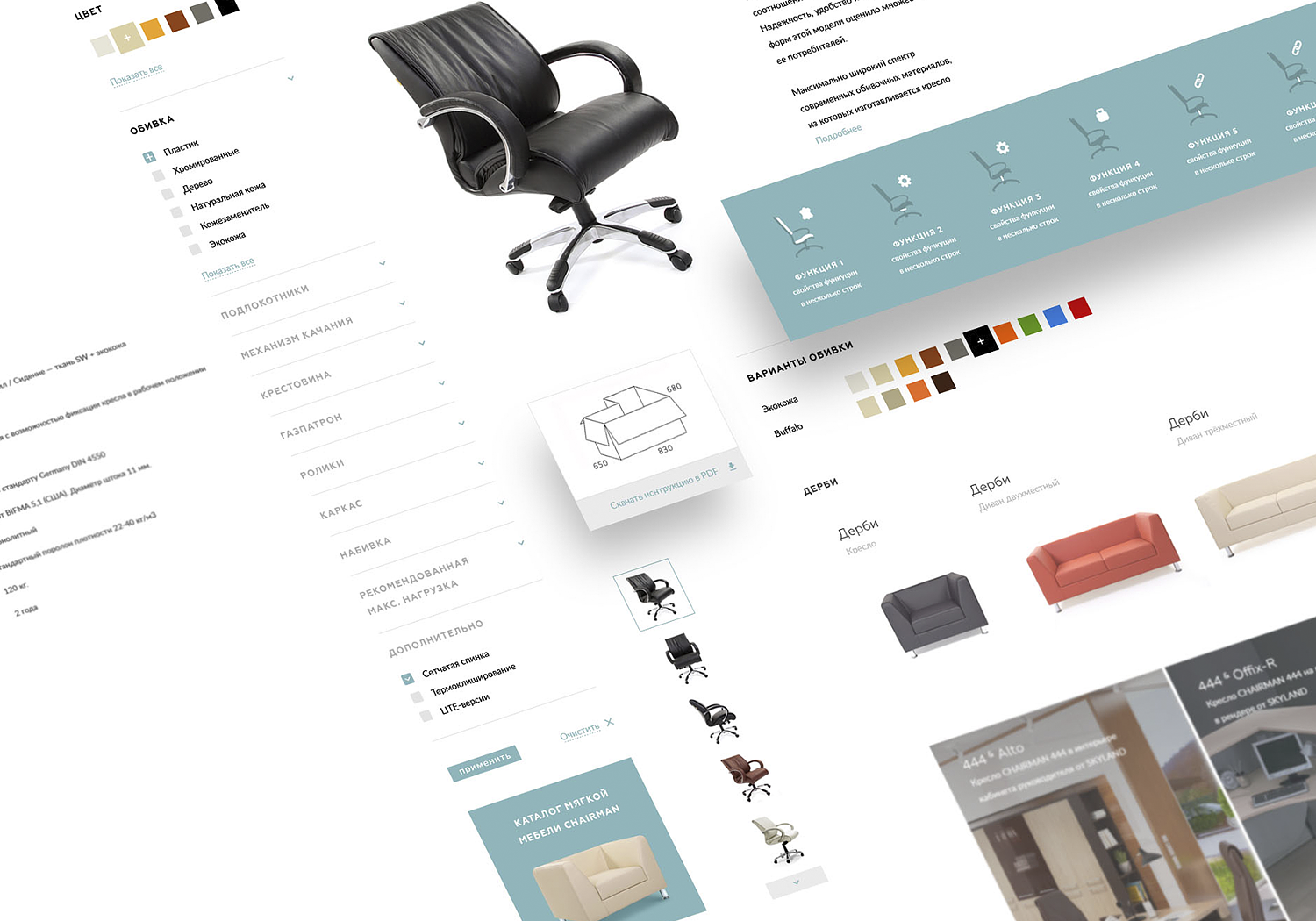 Появилась возможность выбора исходя из всех участвующих параметров вплоть до цвета, типа обивки, подголовника, поясничной поддержки и прочего. Продумали и правильно расставили акценты на страницах, добавили информацию о конкурентных преимуществах, внедрили механизмы подбора схожего товара внутри одного товара, а также возможности продаж иной продукции промышленной группы (к примеру, предложения присмотреть к креслам корпусную мебель).
