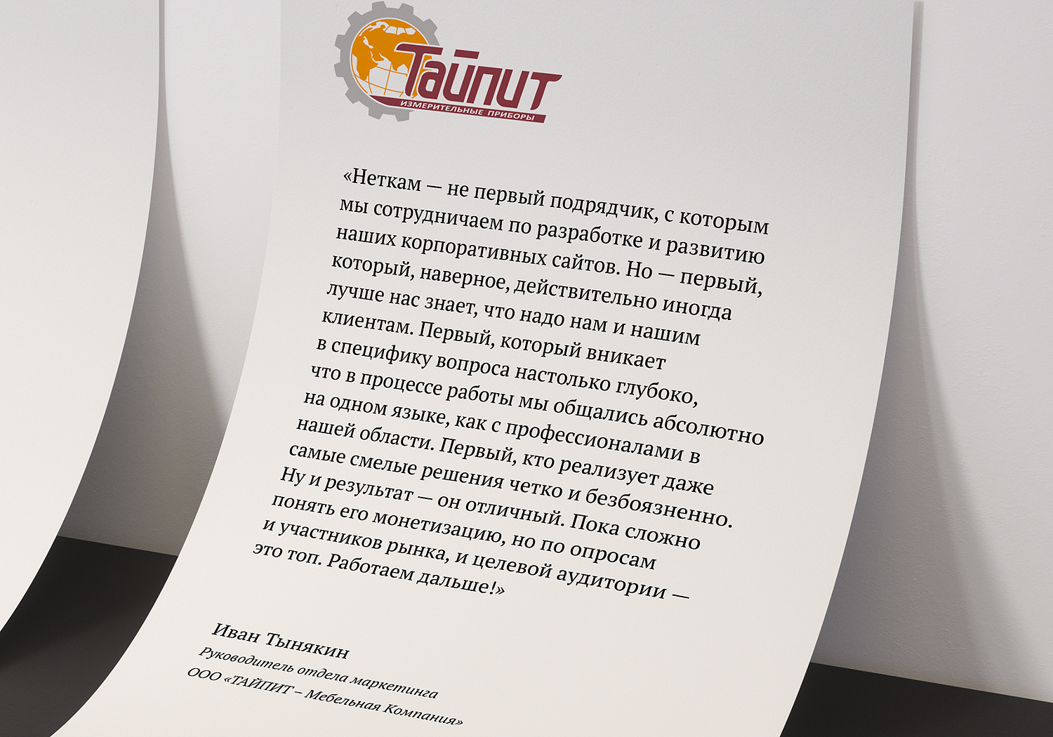 «Неткам — не первый подрядчик, с которым мы сотрудничаем по разработке и развитию наших корпоративных сайтов. Но — первый, который, наверное, действительно иногда лучше нас знает, что надо нам и нашим клиентам. Первый, который вникает в специфику вопроса настолько глубоко, что в процессе работы мы общались абсолютно на одном языке, как с профессионалами в нашей области. Первый, кто реализует даже самые смелые решения четко и безбоязненно. Ну и результат — он отличный. Пока сложно понять его монетизацию, но по опросам и участников рынка, и целевой аудитории — это топ. Работаем дальше!»