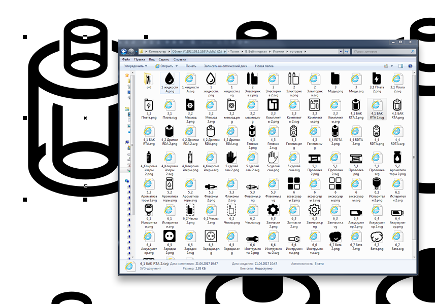 Было понятно, что представляют из себя зарядки и флаконы, а вот с дрипками и клиромайзерами дизайн-отдел столкнулся впервые. Иконка должна быть привлекательной и ёмкой, хорошо адаптироваться под разные размеры и цвета. Но основная её задача -- быстро и чётко преподносить сложную информацию.