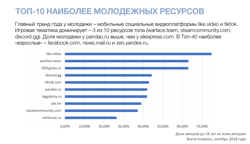 Молодежь уходит в субкультурные агломерации. В России, как и во всем мире, отмечается взрывной рост like.video и TikTok. Хочется добавить, что еще год назад в России никто и не слышал про TikTok, а некоторые до сих пор не знают про like.video или Discord. А вместе с тем Z-ребята уже там и поколения «разлетаются» все дальше по своим социальным галактикам. Теперь к трендовым видеоблогингу и стримингу добавился растущий тренд мобильных социальных видеоплатформ.