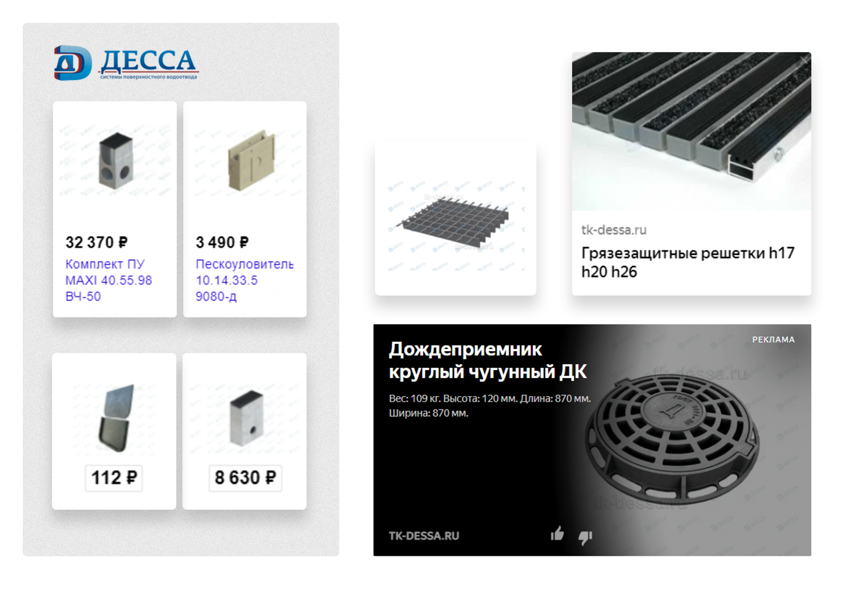 Задача динамической кампании — автоматически создать релевантный заголовок для объявления и отправить пользователя на страницу нужного товара. Это оптимальная стратегия для крупных интернет-магазинов. На сайте Дессы — большой ассортимент, и проработка каждой позиции вручную отняла бы много времени.