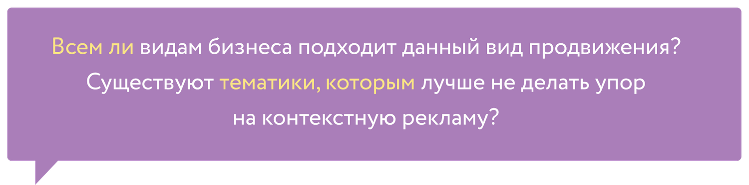 В первую очередь, контекстная реклама – это реклама товаров/услуг сформировавшегося спроса. Если товары/услуги бизнеса ищут в интернете, то нет никаких препятствий для данного вида продвижения.