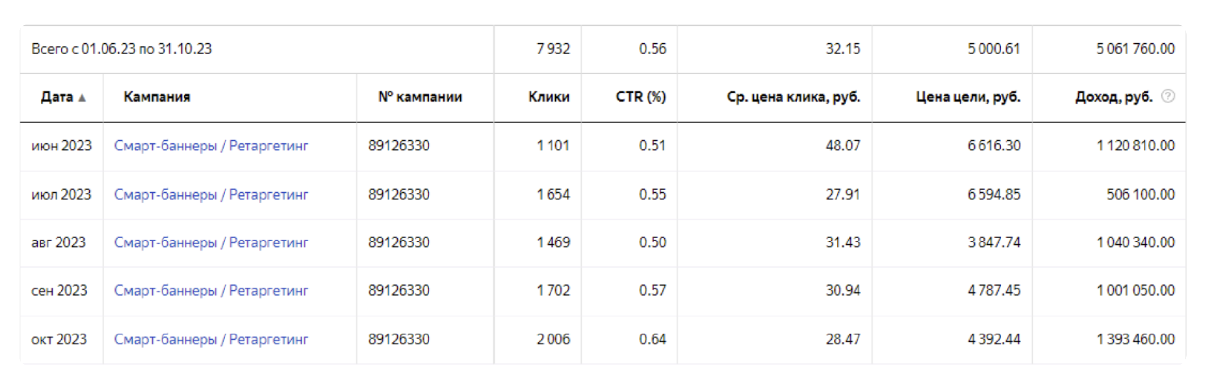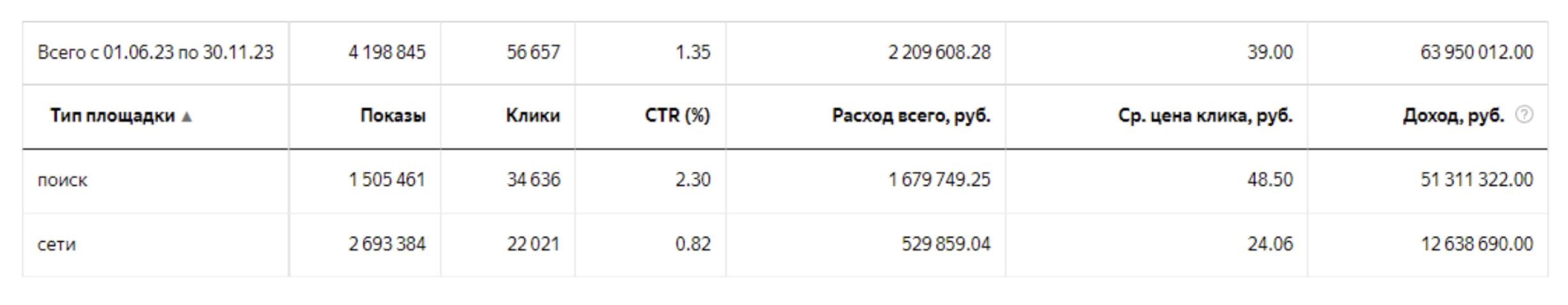 Решение: мы обнаружили, что 78% дохода приносят смарт-баннеры на ретаргетинг и товарные объявления по фидам. Предложили клиенту увеличить бюджет для этих форматов.