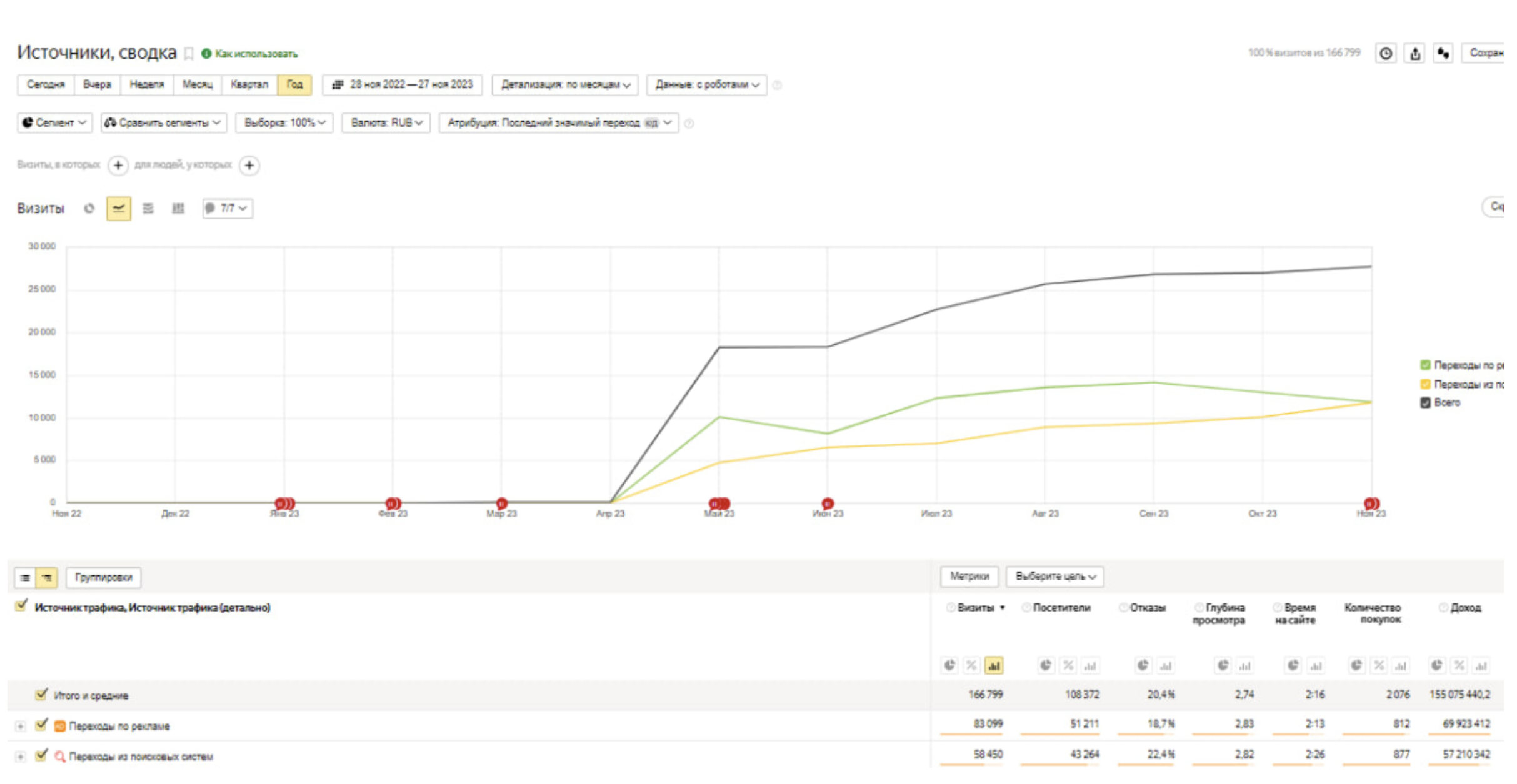 С апреля по ноябрь растет и рекламный, и поисковый трафик
