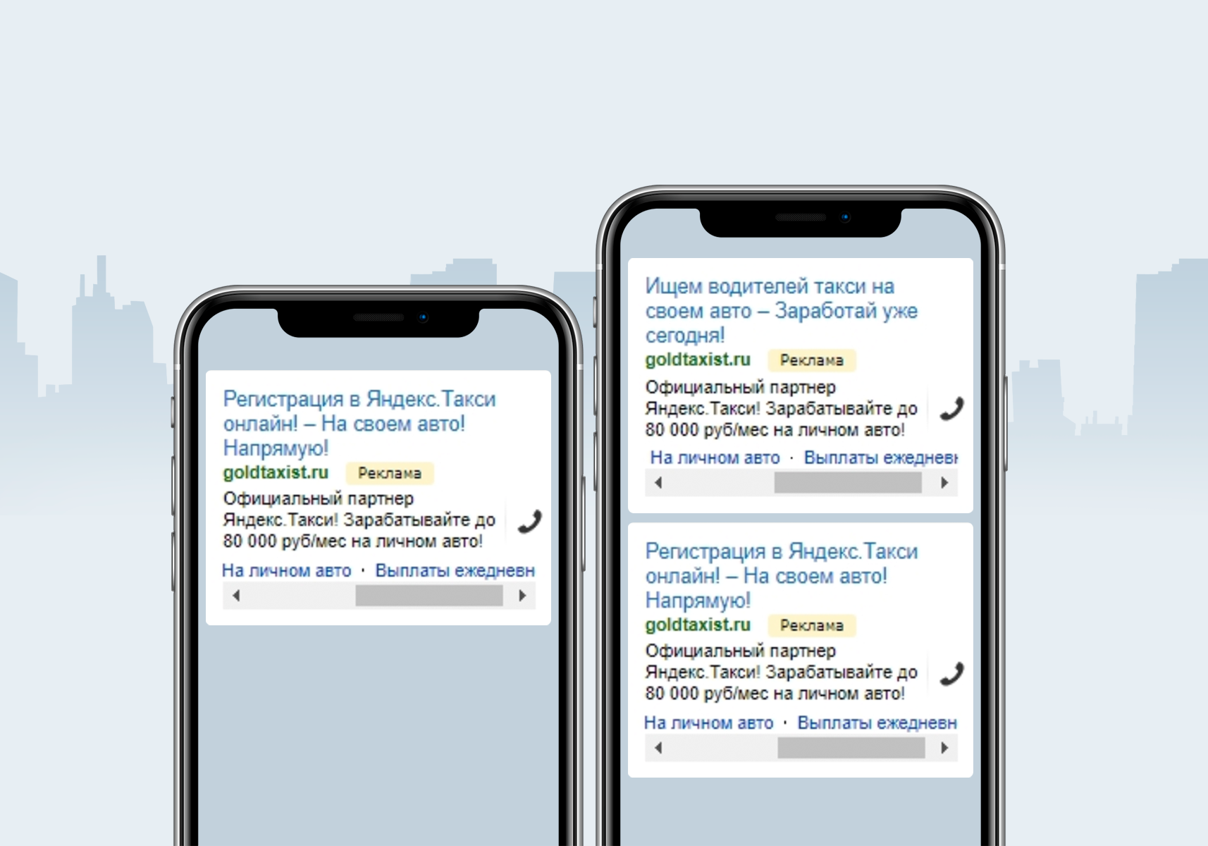 Пример мобильных объявлений на поиске