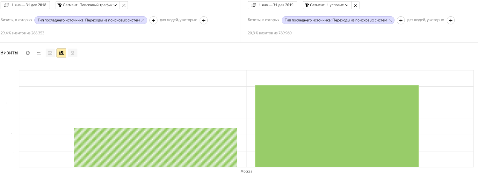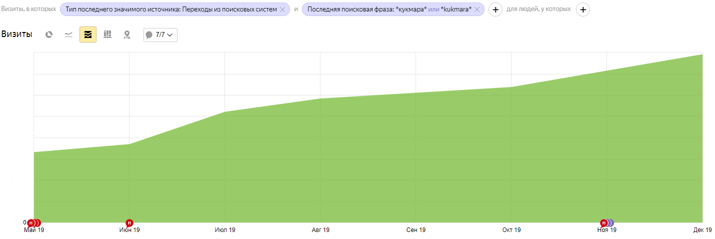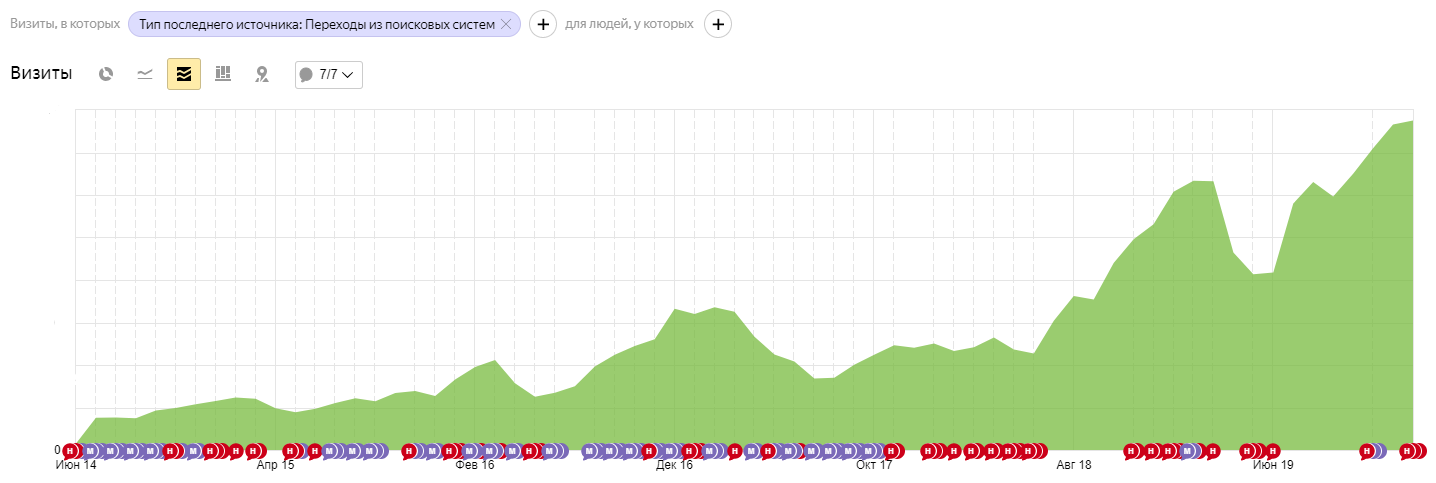 В декабре 2019 года удалось поставить абсолютный рекорд по посещаемости из поисковых систем с учетом поискового трафика за все время существования метрических данных сайта, начиная с 2014-го года. И трафик продолжает расти.