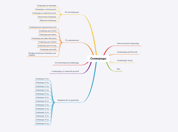 Простой пример. На сайте заказчика раздел «Сковороды» был разделен на 4 группы: