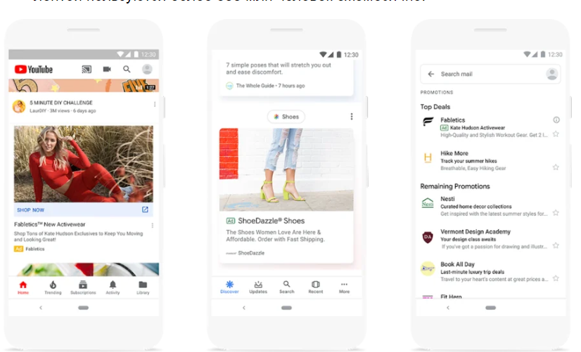 2. Кампании Discovery — реклама в персональном фиде Google (файле о товаре или услуге), YouTube и почте Google.