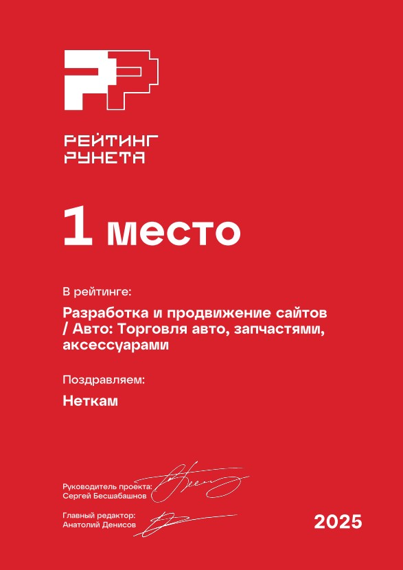 Топ-1 по России в срезах «Торговля автозапчастями», «Производство товаров для авто», «Авто» и «Производство авто»,