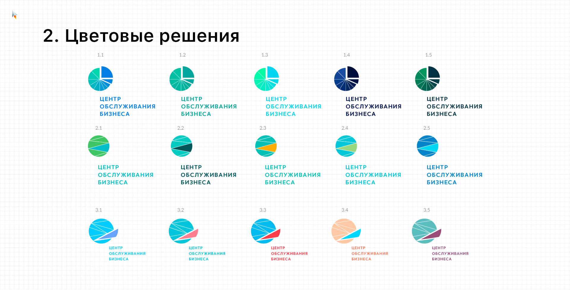 За весь период разработки логотипа и поиска решений мы прошли три этапа, которые включали 26 вариантов логотипа и 28 различных цветовых решений.