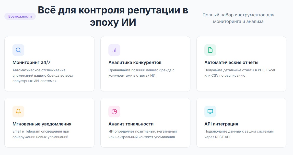 • Работаем с отзывами, упоминаниями бренда и ссылками, чтобы увеличить вероятность цитирования сайта в генеративных ответах.