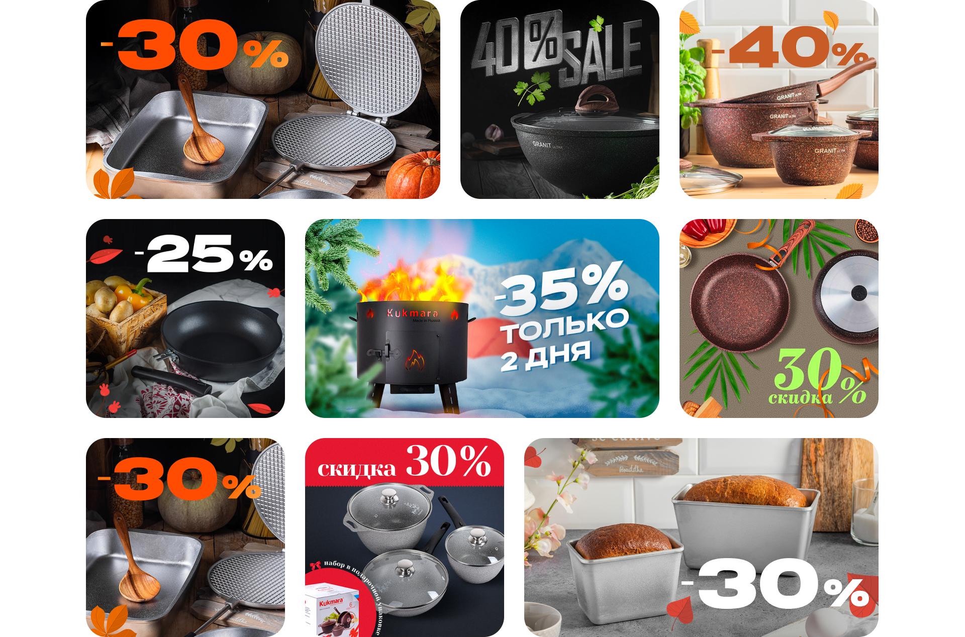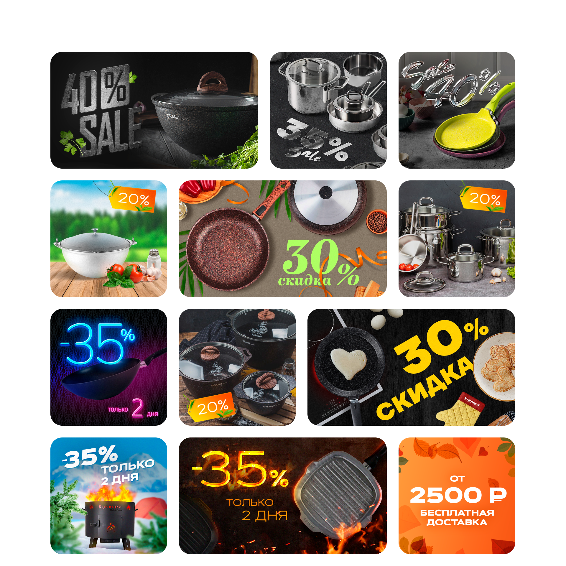Рекламные креативы для онлайн-магазина посуды www.market.kukmara.com