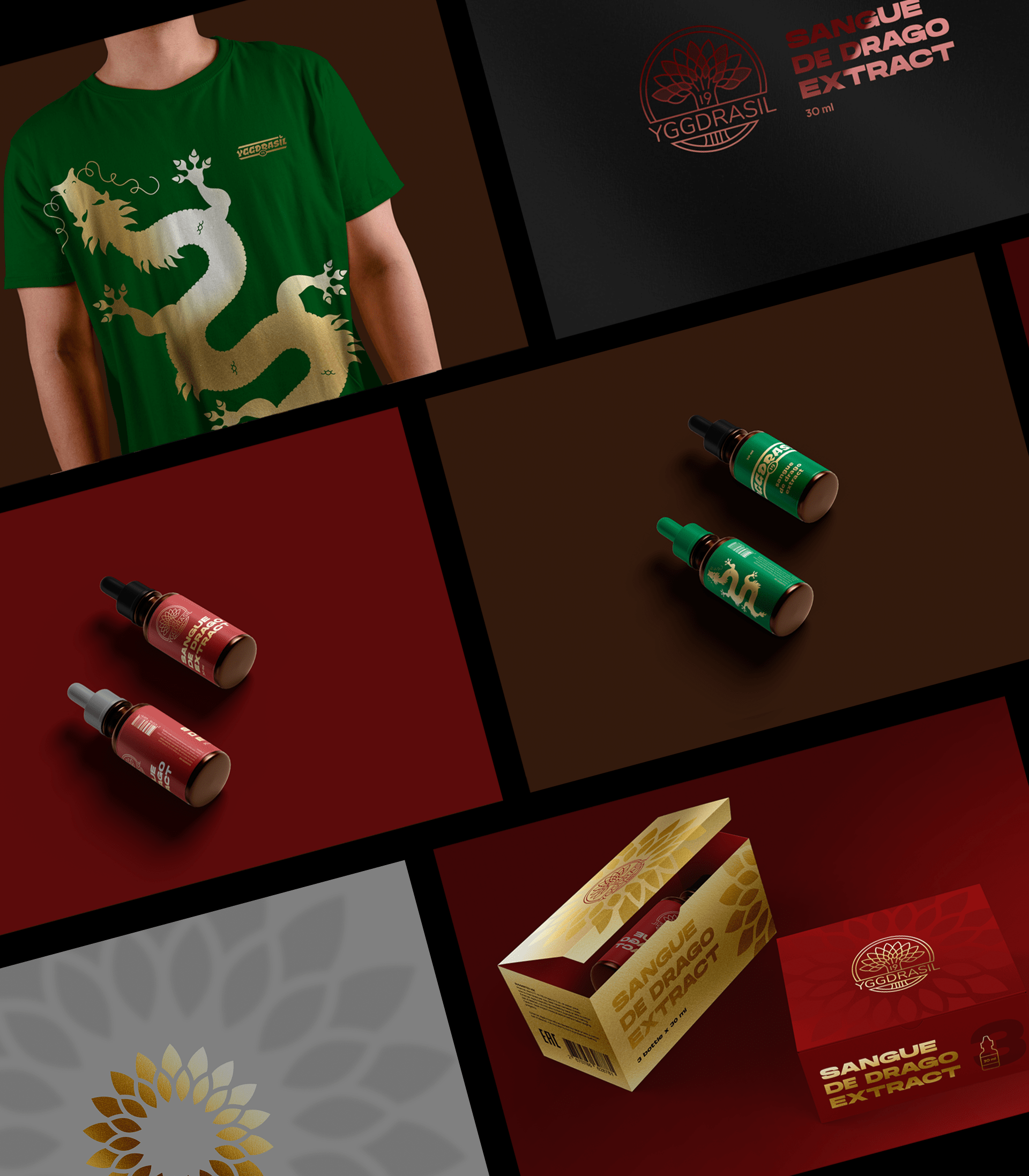 Фирменный стиль для заживляющего бальзама «Кровь Дракона». Было разработано 3 варианта логотипа, прототипы упаковок и фирменный мерч.
