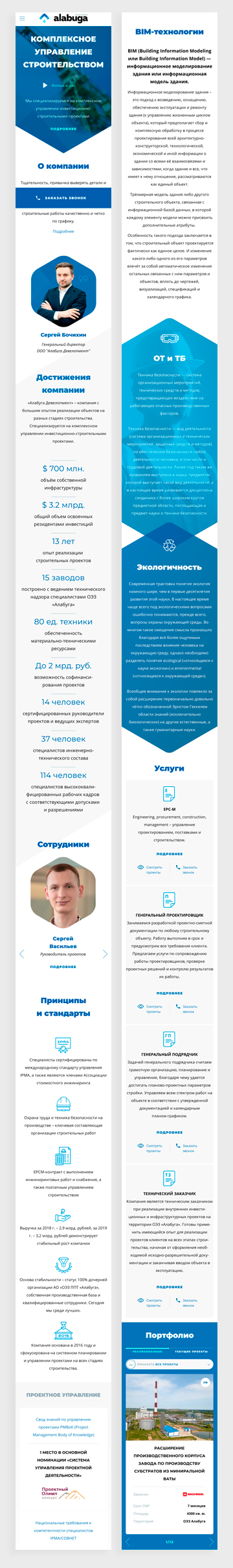 Лендинг для компании, специализирущейся на комплексном управлении инвестиционно-строительными проектами.
