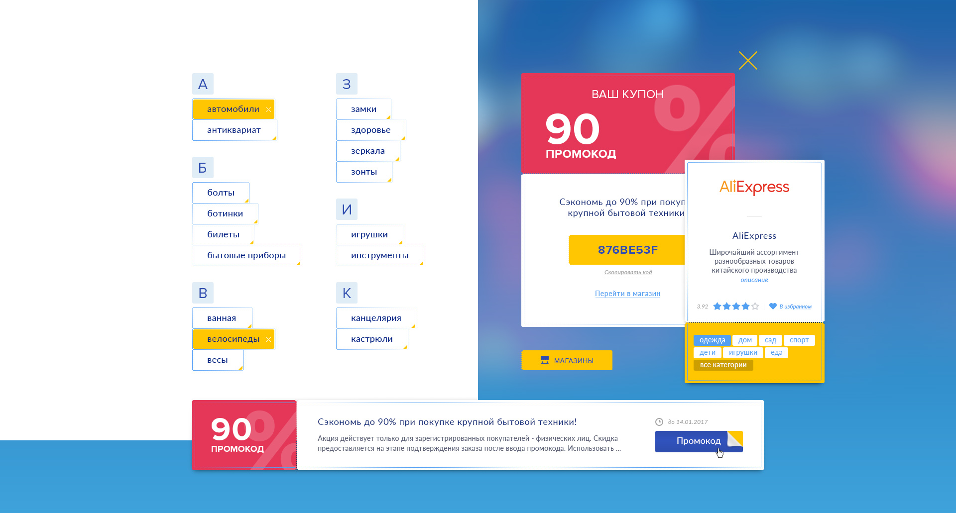 Российский интернет-проект, предоставляющий бесплатные купоны и скидки на самые популярные интернет-магазины мира.