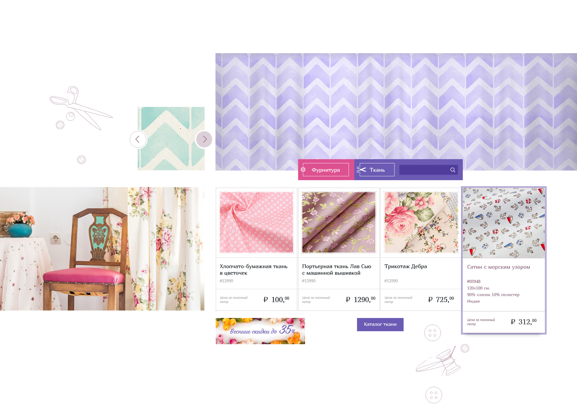 Сеть магазинов «Фея» предлагает тысячи видов тканей, сотни декоративных элементов и фурнитуры для шитья.