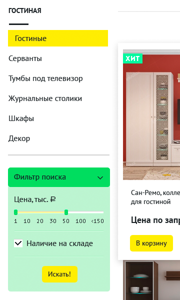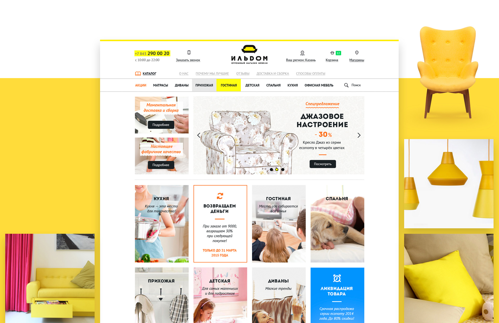 Интернет-магазин мебели «Ильдом» с продуманным каталогом и подробными категориями товаров позволяет легко ориентироваться на сайте, находить нужный товар, подбирать модули в комплексе или отдельно.