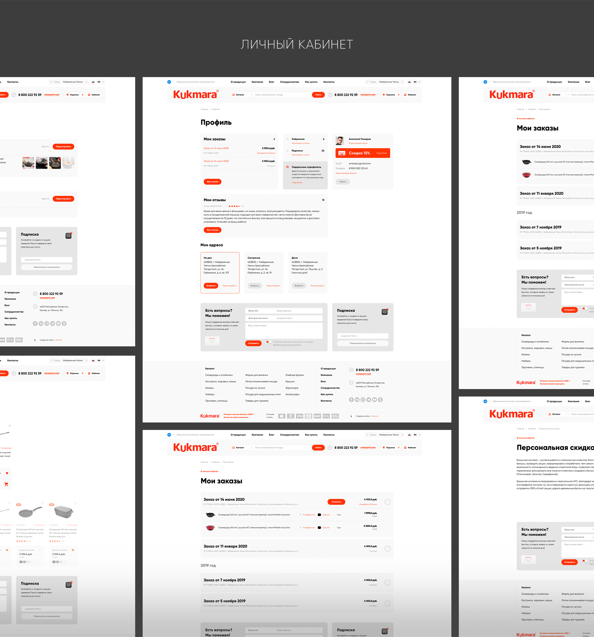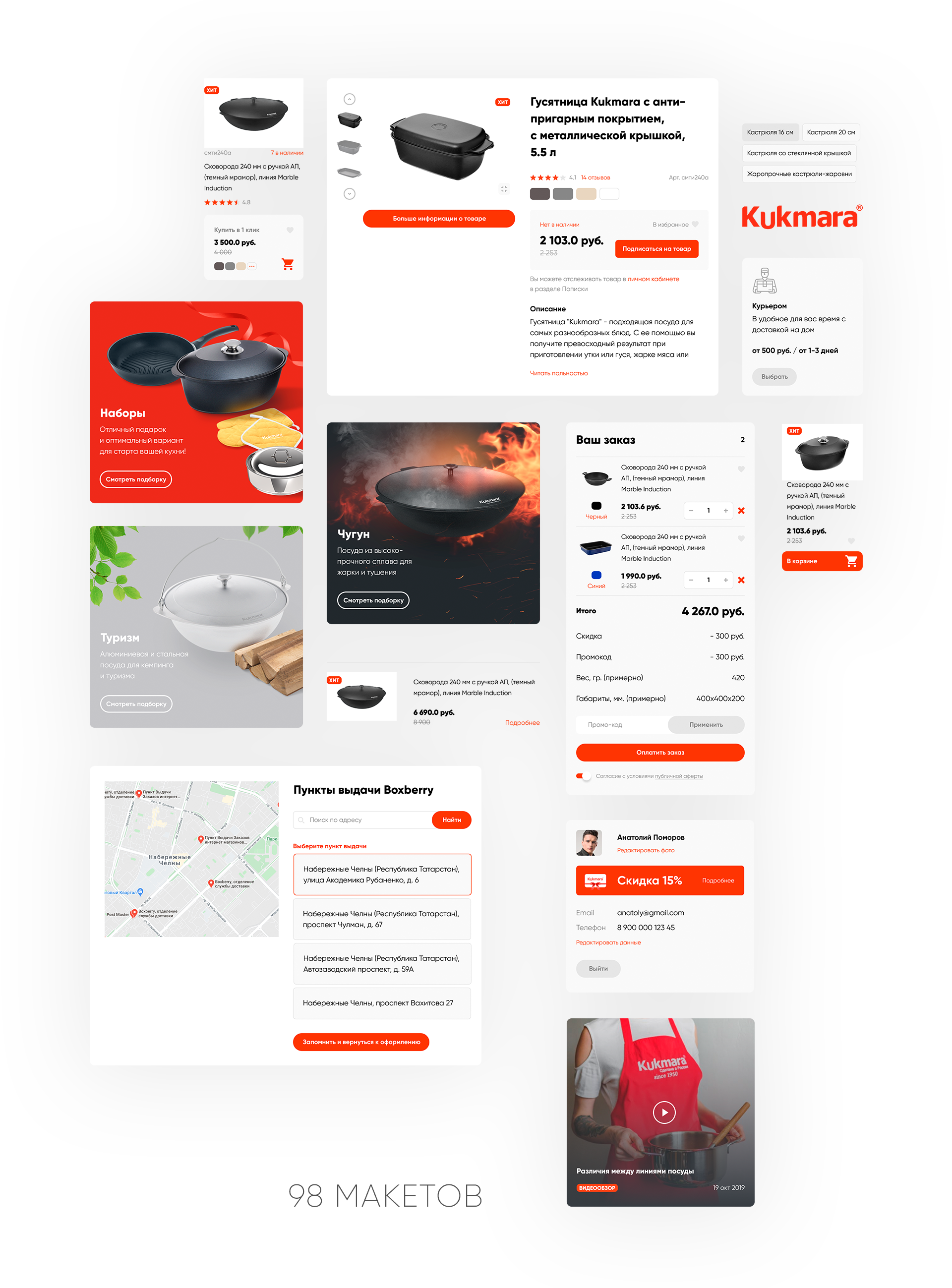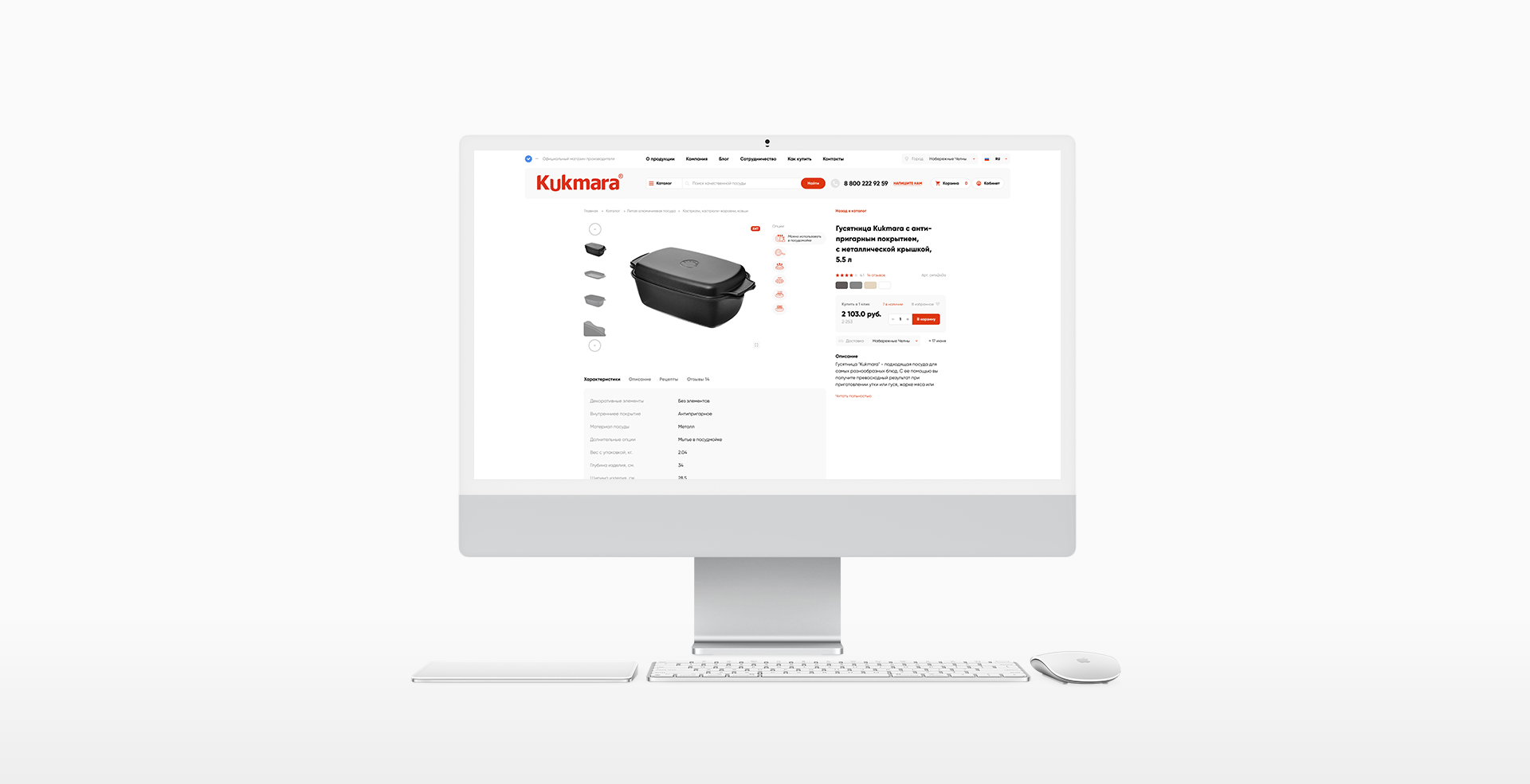 Новая версия сайта посуды Kukmara: двусторонняя синхронизация интернет-магазина с 1С, интеграция системы заказа и доставки с транспортными компаниями Почта России, Boxberry и СДЭК, онлайн-оплата с помощью эквайринга Сбера и платежного агрегатора Robokassa, личный кабинет пользователя, маркетинговая панель по управлению промо-кодами, купонами на покупку и многое другое.