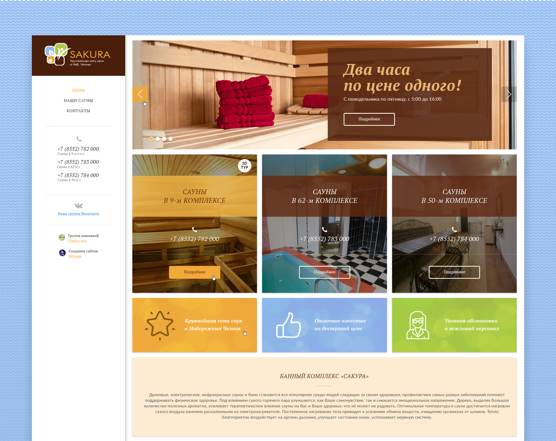 Крупнейшая сеть саун в Набережных Челнах c бревенчатыми банями, турецким хамамом и финскими парными.