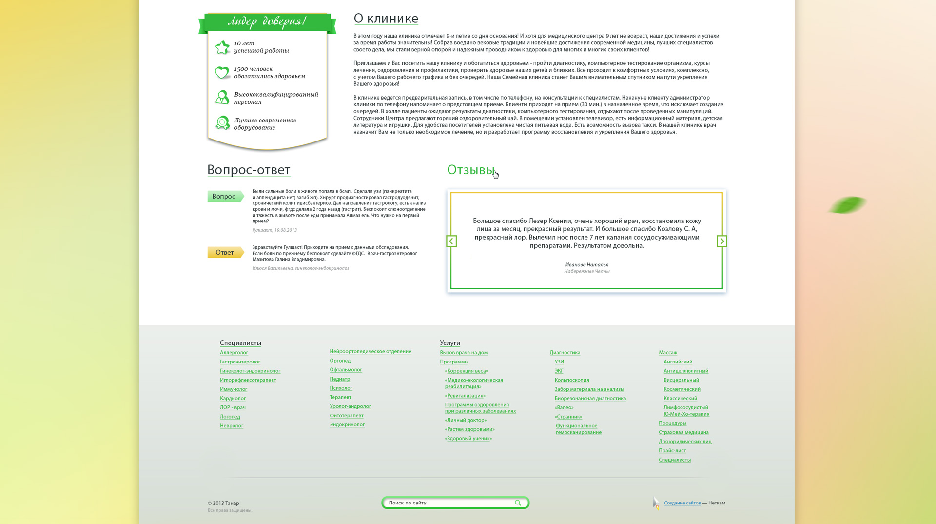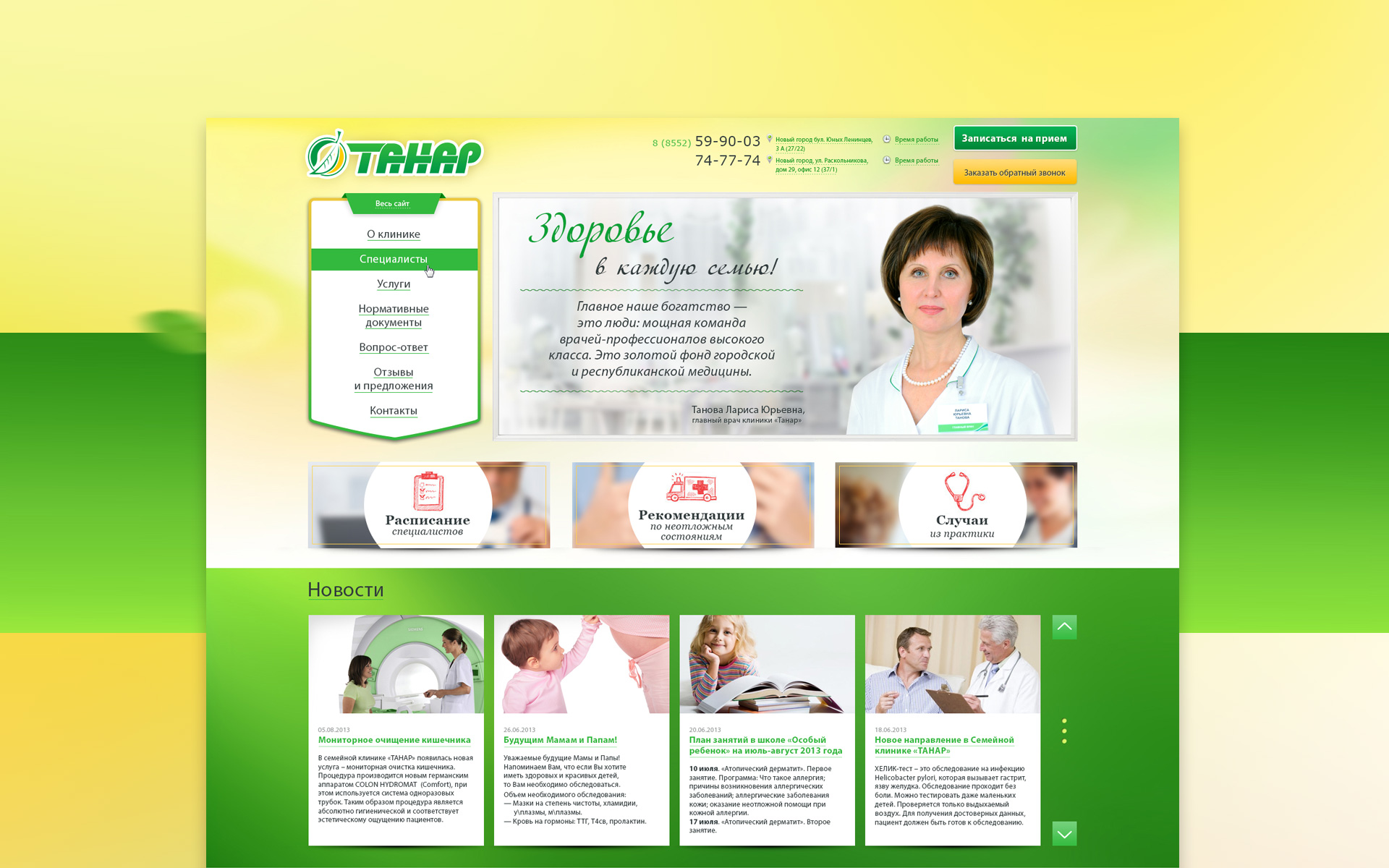 Семейная клиника «Танар» объединила новейшие достижения современной медицины и лучших специалистов своего дела.